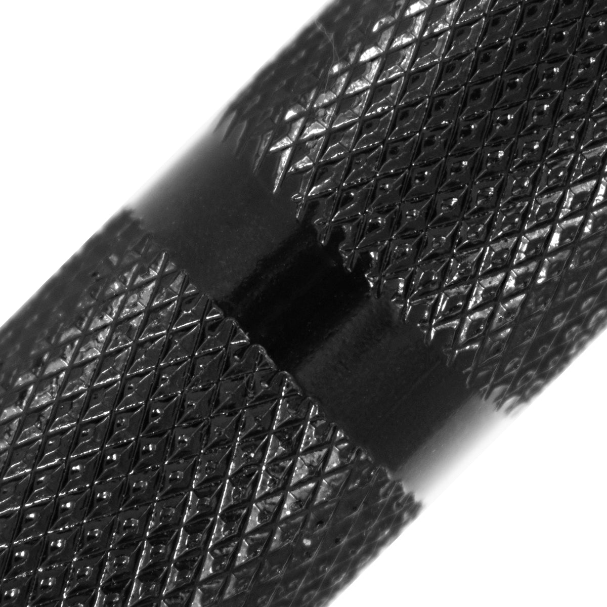 Der Schaft dieser Langhantel ist mit einer schwarzen E-Beschichtung (E-Coat) überzogen, die eine höhere Verschleißfestigkeit aufweist als schwarzes Oxid, Chrom oder Zink. Dabei ist die Beschichtung korrosionsbeständig und umweltfreundlich. Die E-Beschichtung ist ein Verfahren zum elektrischen Aufbringen einer Lackschicht auf Metalle. Das Ergebnis ist eine strapazierfähige und dauerhaft haltbare Oberfläche, die der Oxidation und Korrosion durch Wasser, Sonnenlicht und Haushaltschemikalien widersteht.