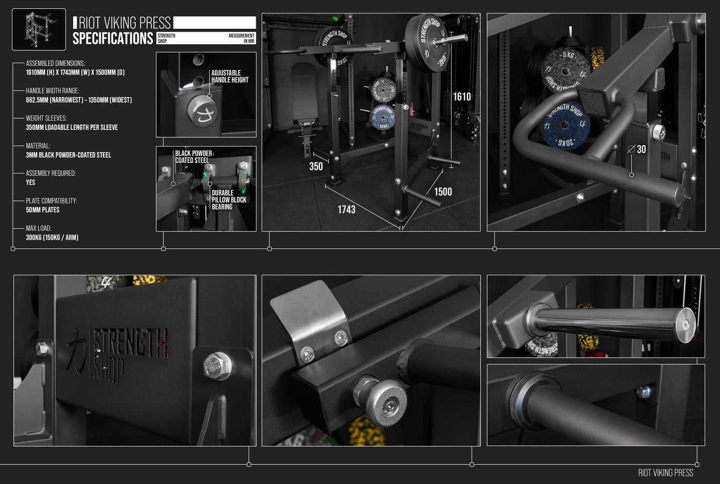 - Ikonische Strongman-Bewegung: Überkopfdrücken mit stabilem Hebelweg für hohe Lasten.
