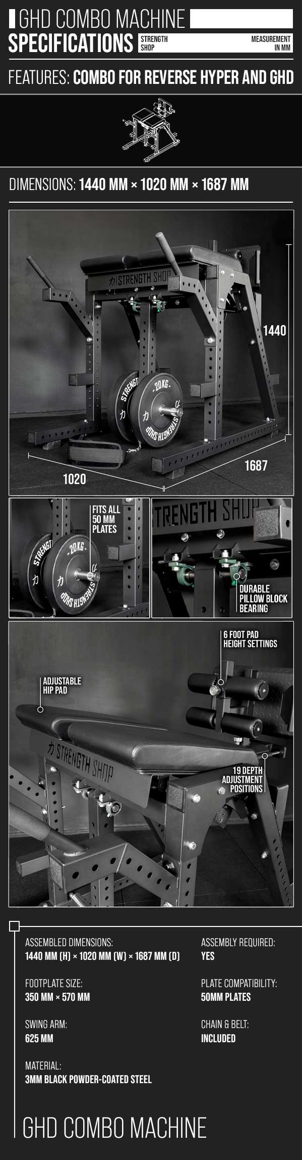 Unsere erste hauseigene Reverse Hyperextension und sie kommt gleich als Kombigerät mit einem vollwertigen GHD (Glute Ham Developer). Entwickelt für Athlet:innen, die Wert auf Rückenstabilität, Gesäß- und Beinmuskulatur legen, ob im Kraftsport oder in der Reha.