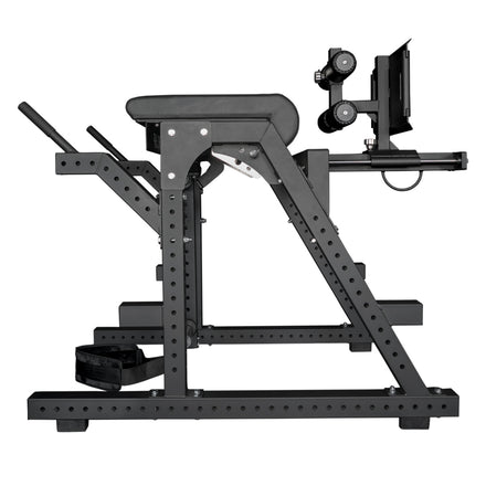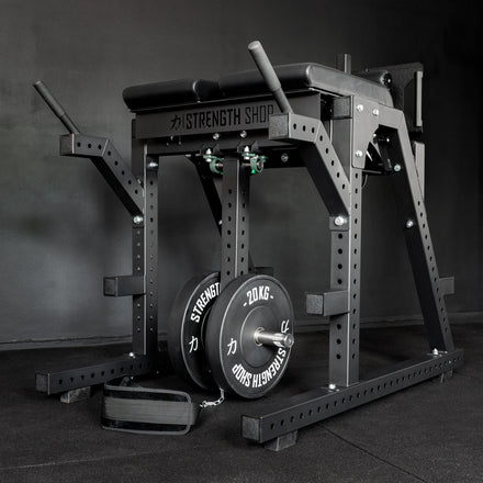 The adjustable footplate and hip pad allow the movement to be tailored to each user, ensuring proper range of motion and comfort. A swing arm with dual 198mm loadable sleeves accommodates significant resistance using Olympic plates, while the supplied belt and chain make setup fast and secure.