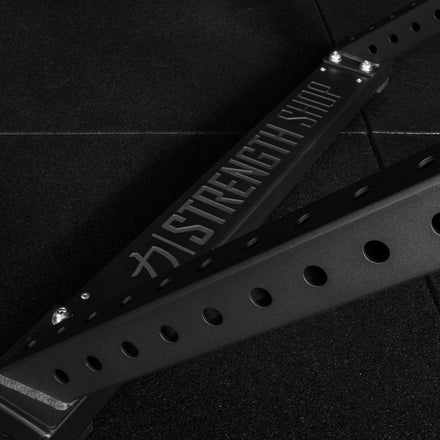 Featuring a “Westside” 25mm hole-spacing on our Riot MRR Racks allows for precise adjustments of bar and safety pin heights. In a “Westside”-Style rack, the pin holes are smaller, measuring 17mm, and are positioned closer together, 25mm in the MRR system. This allows for more accurate adjustments when setting up the height of your bar or safety pins. This is optimal for lifts like the bench press, where small height changes can impact the quality of the lift-off. It has been created this way to support lifters of different sizes, making sure the bar is set at the ideal height for both lift-off and safety.