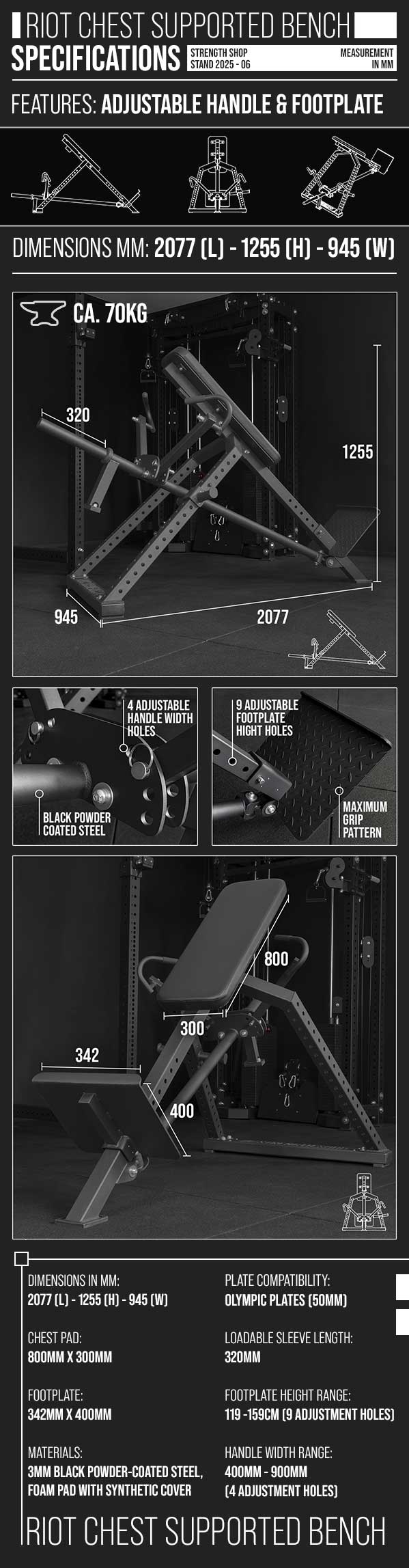 The Riot Utility Bench V2 is designed to deliver stability and precision for demanding athletes. Built fully within IPF specifications, this bench bridges the gap between training and competition. Whether you’re preparing for maximal lifts or incorporating a wide variety of accessory work, the Riot Utility Bench V2 ensures consistency, reliability, and comfort.